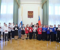 Губернатор Кузбасса Илья Середюк в преддверии Дня Конституции РФ вручил паспорта кузбасским школьникам