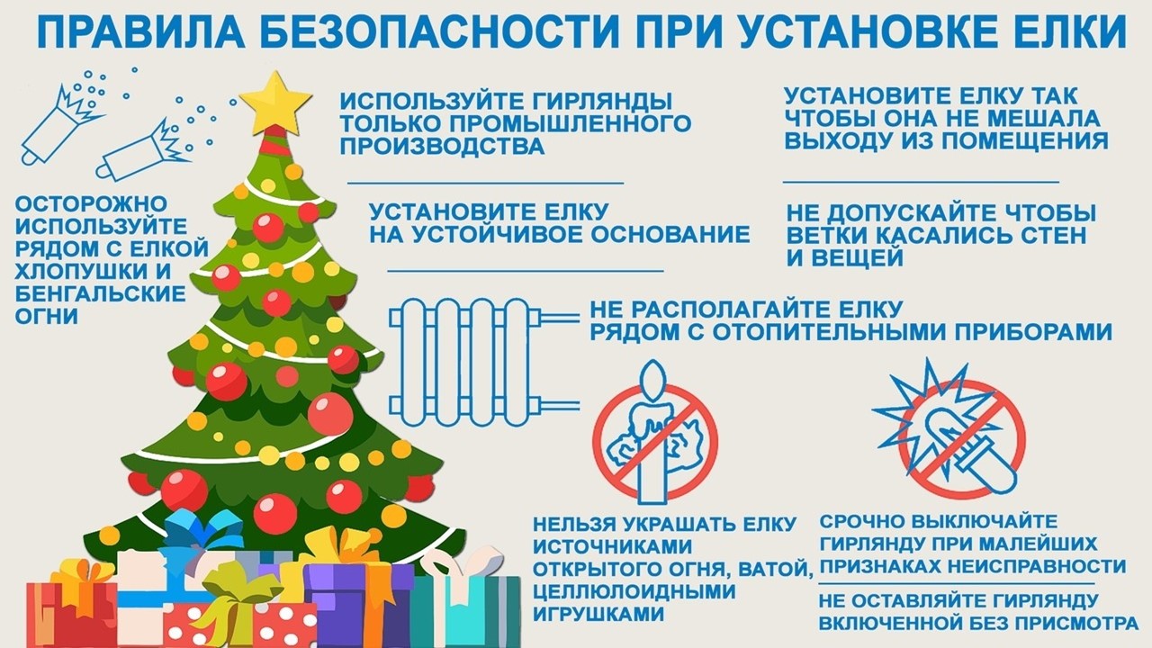 При установке новогодней ёлки важно соблюдать правила безопасности, так как даже небольшое возгорание на ёлке может перерасти в большой пожар. Эти правила касаются выбора ёлки, установки, украшения и эксплуатации.
