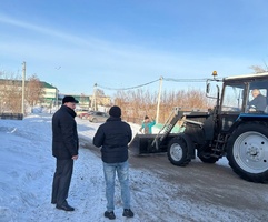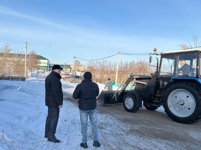 Временно исполняющий обязанности главы Чебулинского округа, Первый заместитель Ю.Н. Феоктистов лично проконтролировал ход работ по обработке территорий социально значимых объектов и тротуаров от наледи.