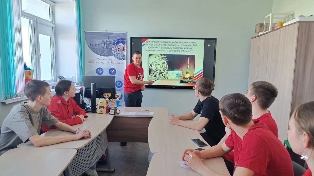 Советник директора по воспитанию Чебулинской школы‑интерната Захарова Е. Н. вместе с активистами Движения Первых провела увлекательную лекцию, организованную Российским детско‑юношеским центром и Российским обществом «Знание». Ученики узнали о великих достижениях российской космонавтики — от первого спутника до будущих межпланетных миссий!