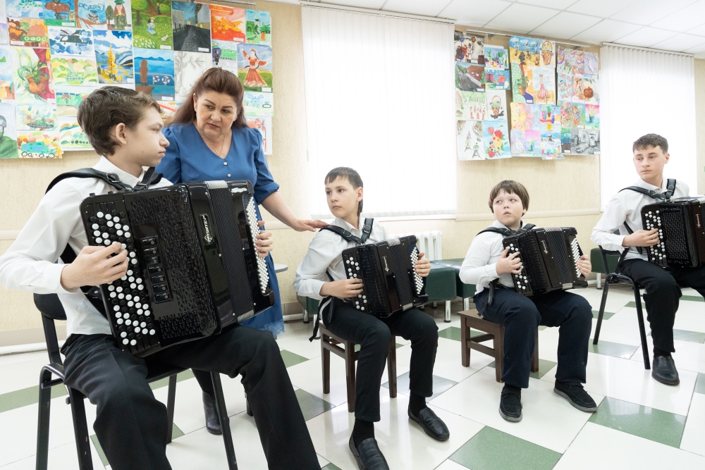 Кроме того, благодаря нацпроекту Детская школа искусств №5 в жилом районе Ягуновский Кемерова получила около 40 единиц светового и звукового оборудования для актового зала, а также новые пособия для художественного отделения — чучела, гипсовые фигуры. В ближайшее время проступят еще 12 модульных столов-мольбертов. Юным музыкантам передали четыре баяна. Общая стоимость полученного оборудования — 3,7 млн рублей.