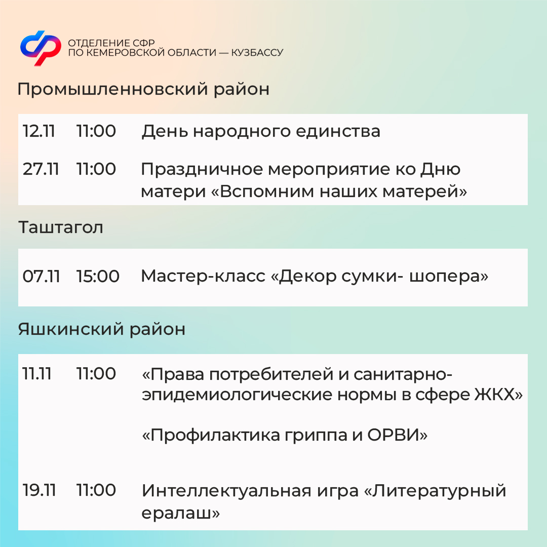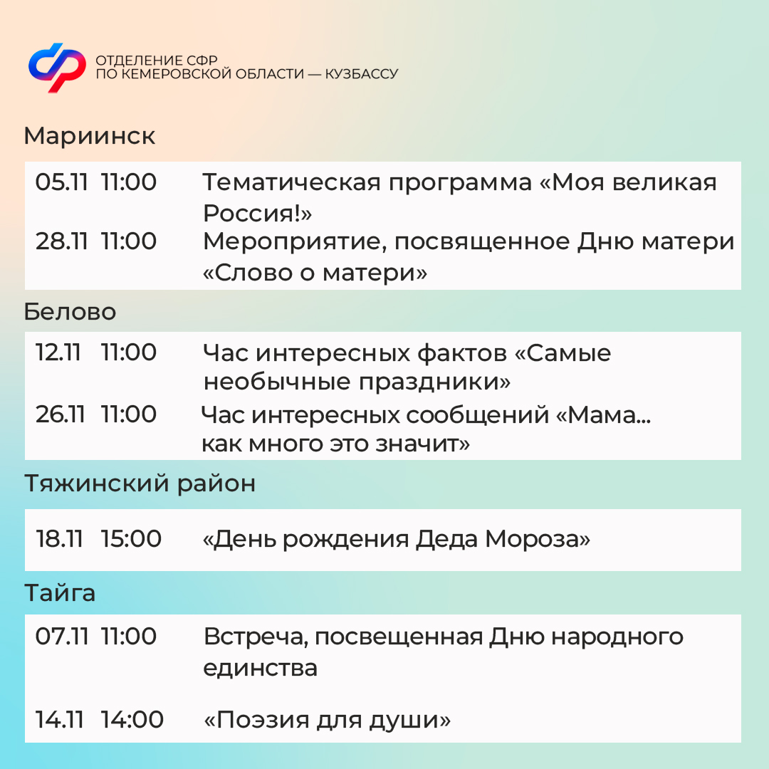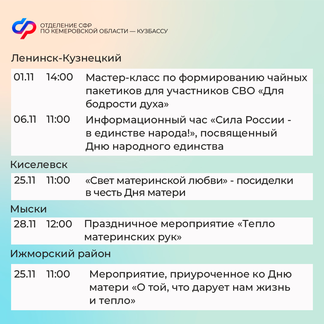 Также все государственные услуги, предоставляемые по линии Соцфонда, можно бесплатно получить в клиентских службах Отделения СФР по Кемеровской области – Кузбассу.