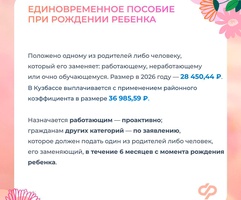 Пособие при рождении ребенка–в Кузбассе выплачивается с применением районного коэффициента в размере 36 985,59 руб.